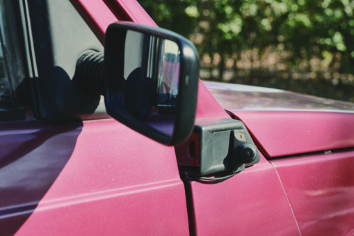 左ハンドルなので右側の視界が悪いため、左折や合流をアシストするカメラを設置。