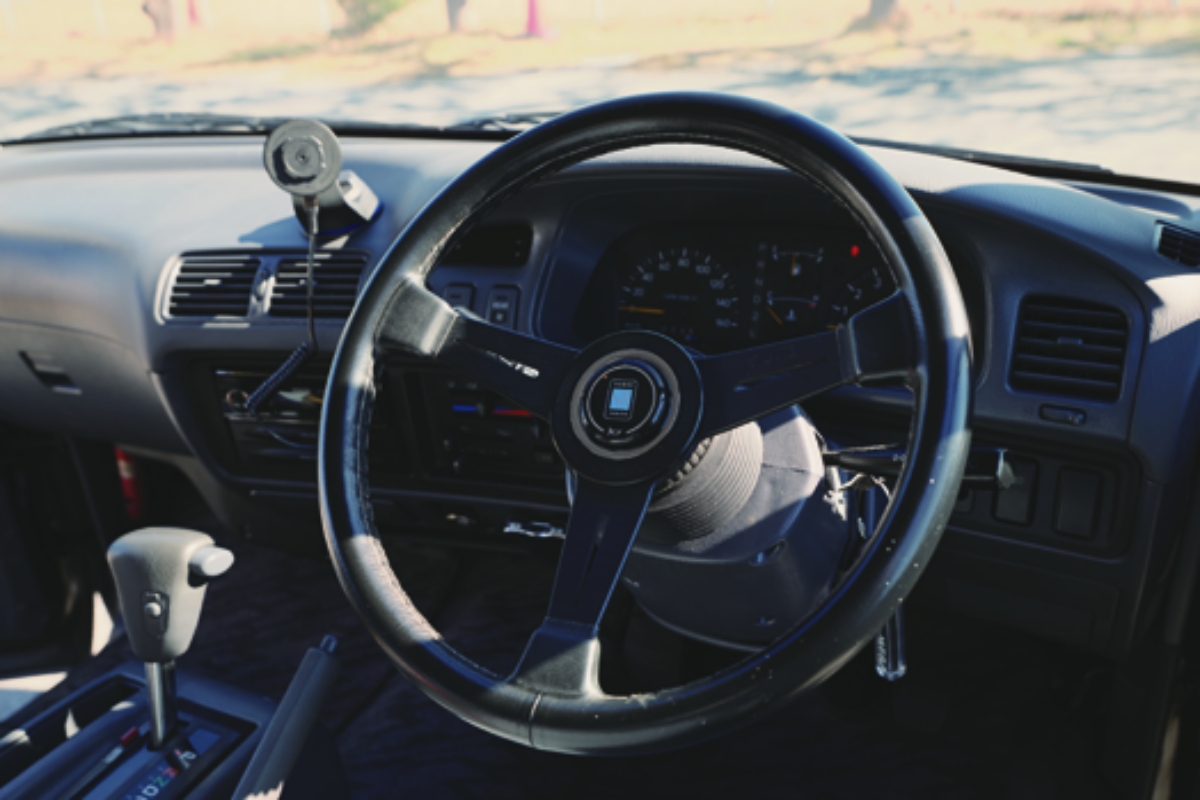ナルディのウッドステアリングをセレクト。内装の雰囲気にもマッチしている。