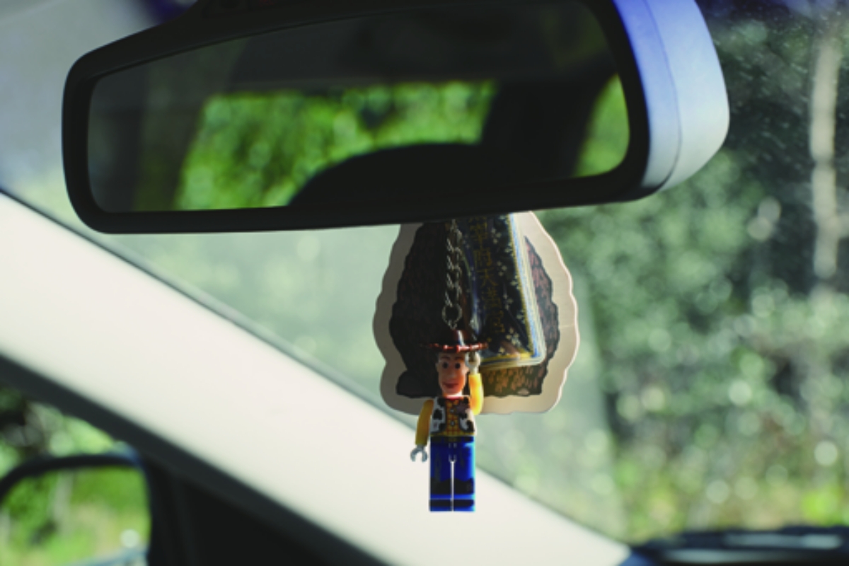 エアフレッシュナーとともにLEGOのウッディもディスプレイ。「トイ・ストーリーが好きなので」。