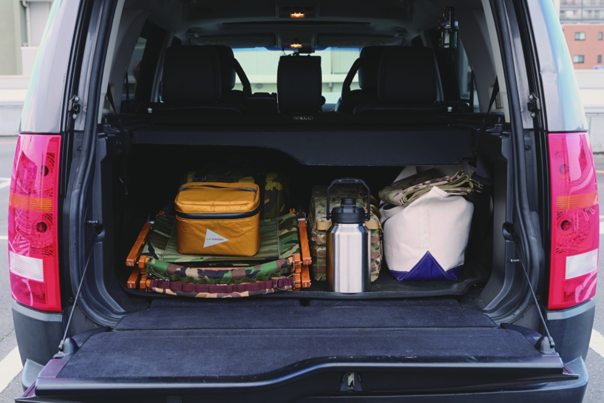 ラゲッジには最低限のキャンプギアを常備。「公園でピクニックできるセットを積んでいます」。