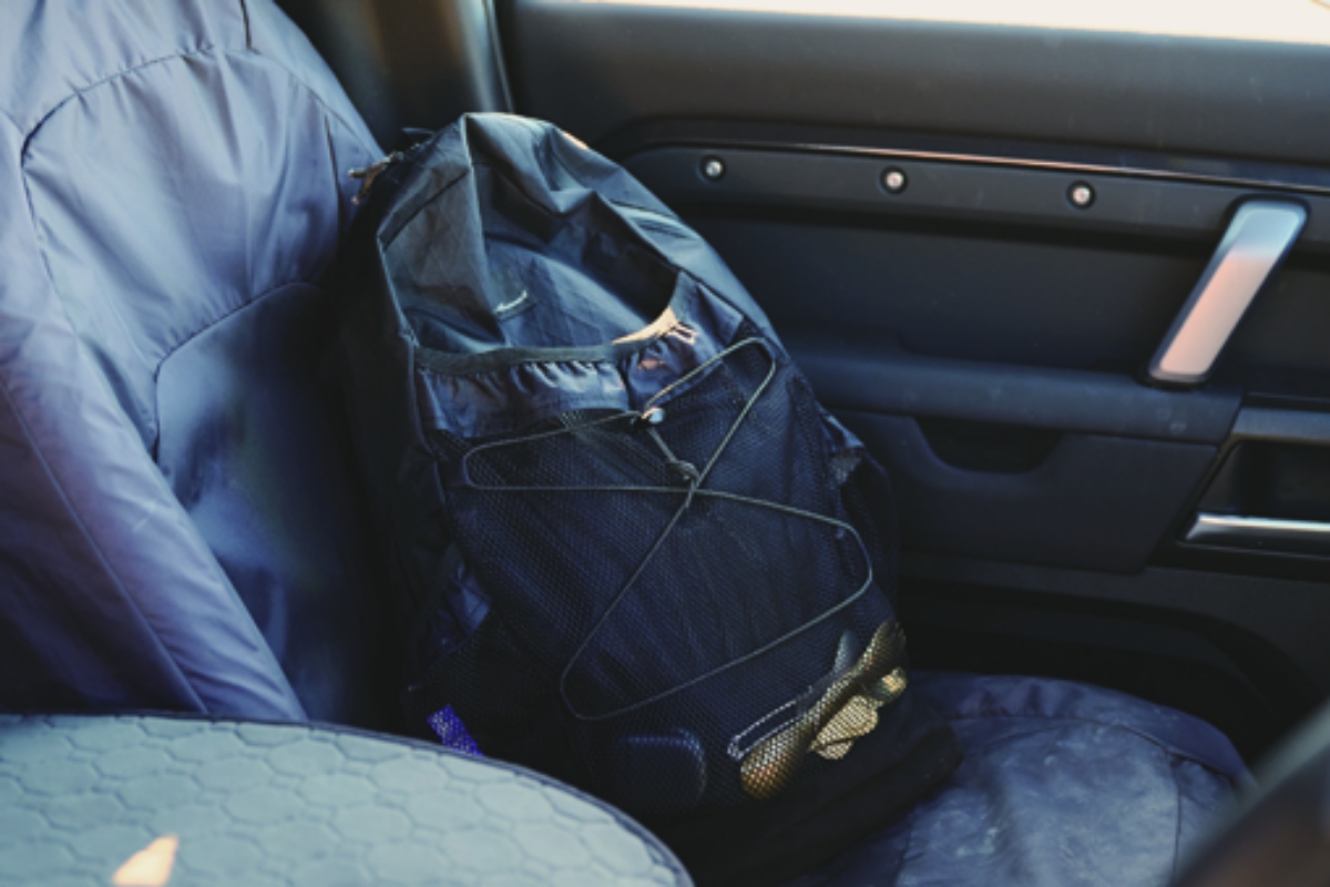 アンサーフォーの最新作、デイバッグ01を愛用。「犬の散歩用に作りました。マナーポーチ用のメッシュポケットもあります」