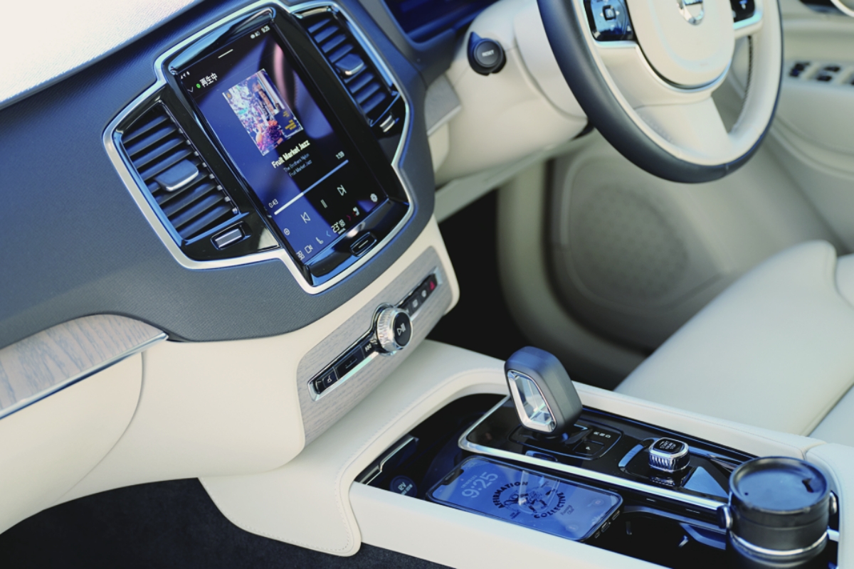 コンソールにスマホを置くだけで充電され、Spotifyの音楽も共有できる。