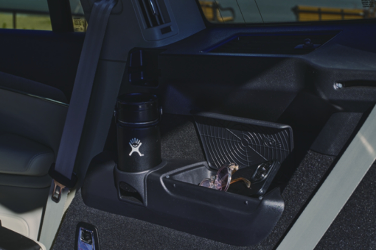 3列目シートのボトルホルダーと収納は、フルフラットの状態でも使いやすい。