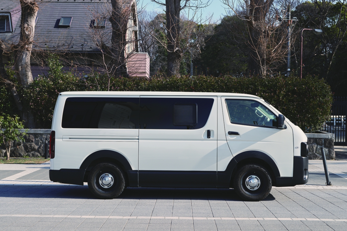 「オートサロンで実車に触れて、その足で蔵前のショップへ向かい購入!!」と話すハイエースは、丸目フェイスが特徴的なゴードンミラーのGMLVAN V-01。
