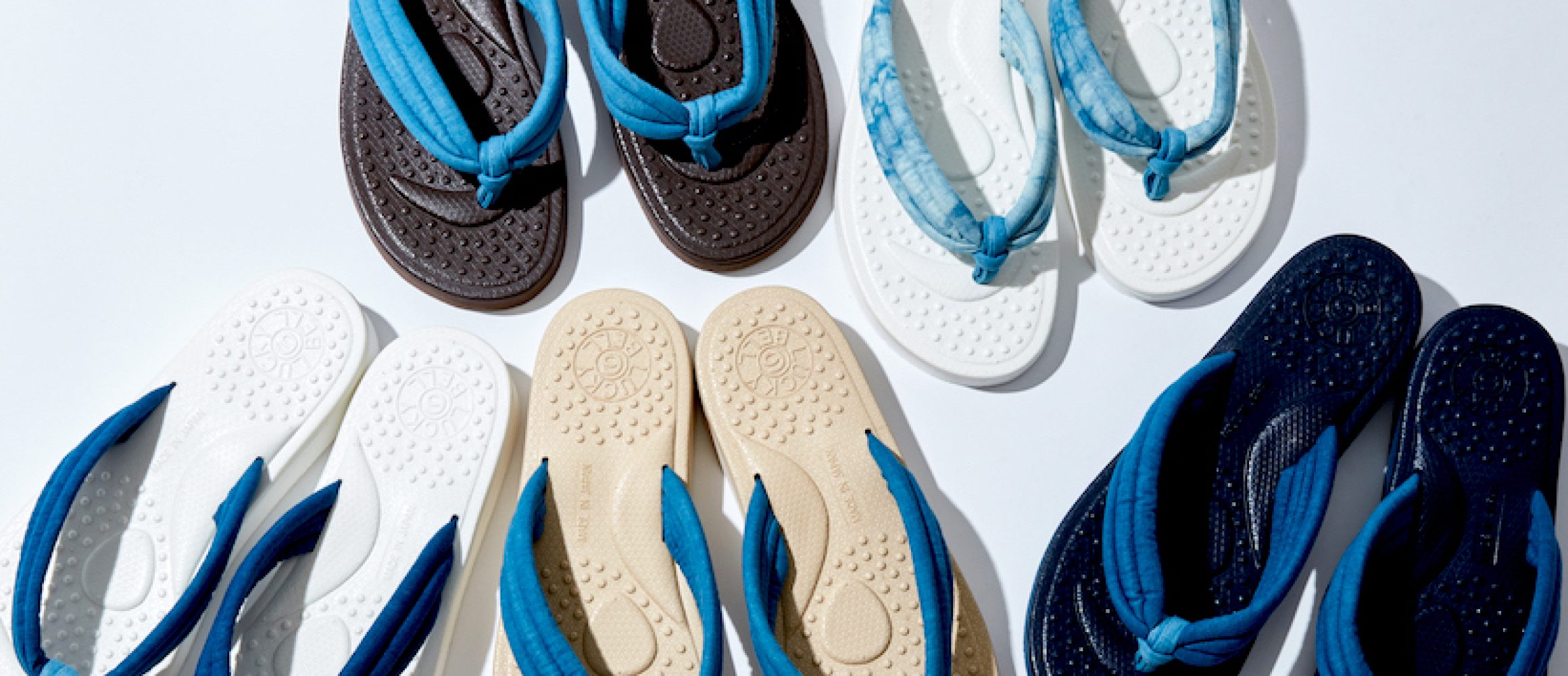 伝統の藍染めを鼻緒に施した、涼感あふれる絶品ビーチサンダル。