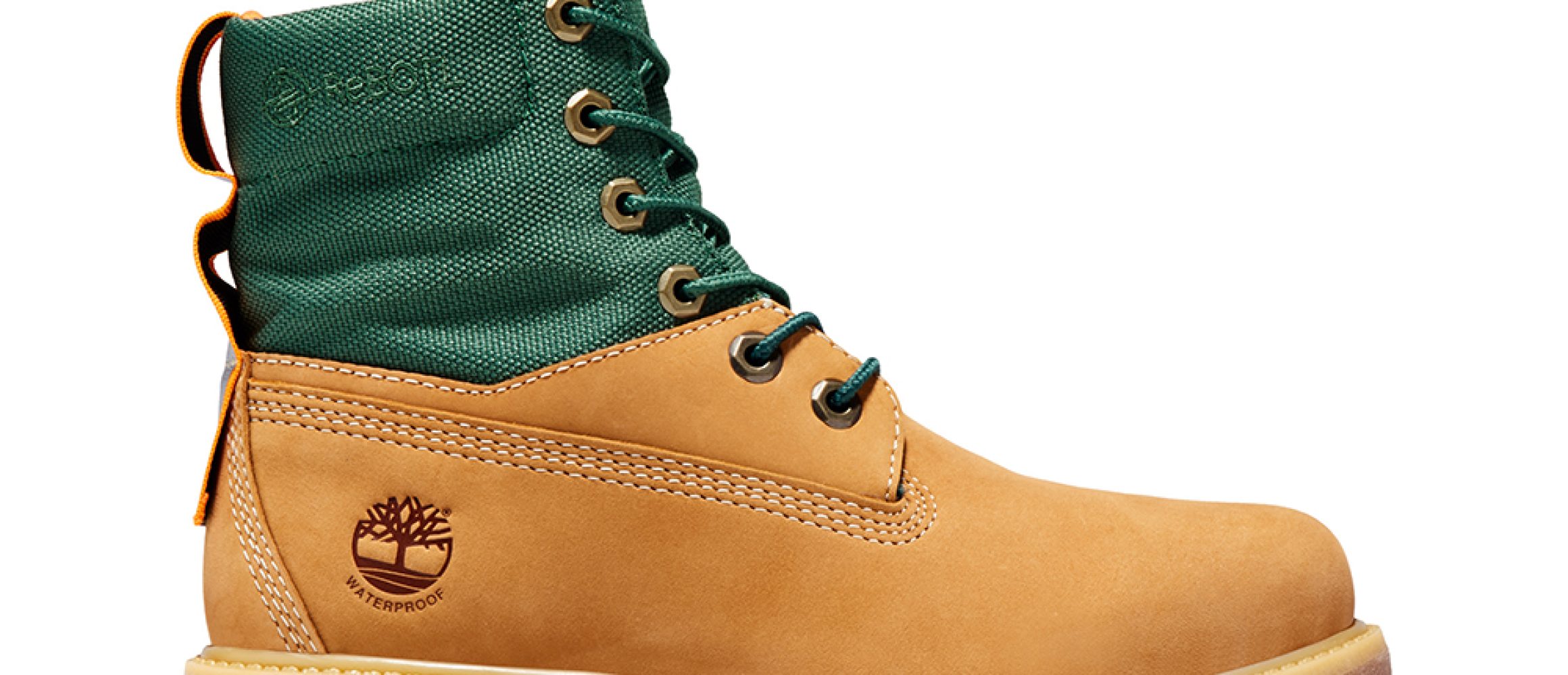 ティンバーランドの名作ブーツが、異素材MIXでモダンに! ペットボトル素材採用のエコな一足。