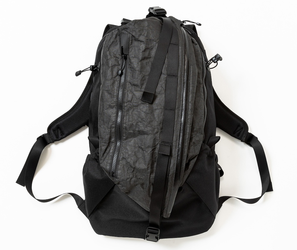 今回はバックパックの他に、ウエストバッグやヒップバッグ、サコッシュ付きデイパックなどもラインナップ。軽量かつ耐久性に優れた INVISTA社のコーデュラナイロンと、超軽量で超強度なポリエチレン素材である Challenge Outdoor社の UltraWeave™ファブリックを採⽤。2種類の⽣地をそれぞれの適した箇所に使い分けされています。