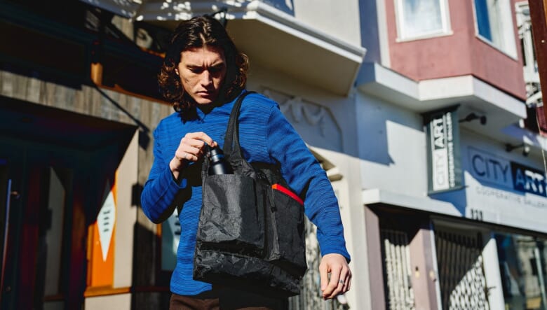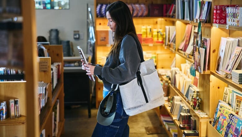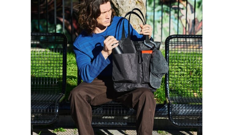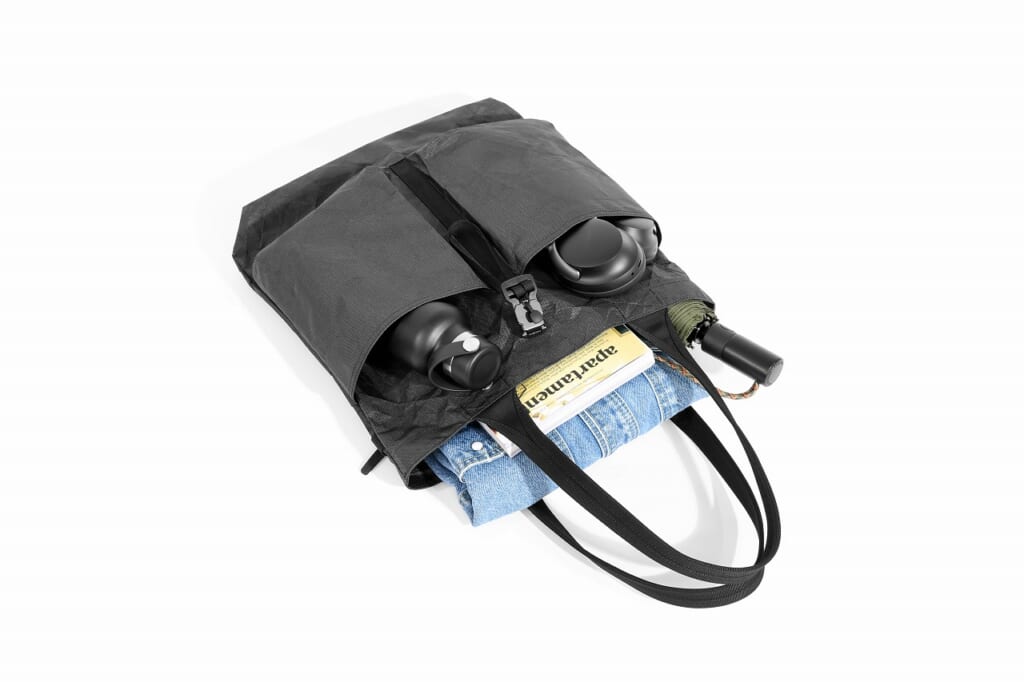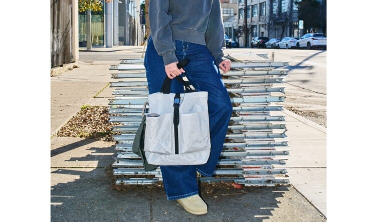 38×33×7.5cmほどの大きさで実際に手にすると「紙袋?」と思うほど軽量(約220g)。ざっくりと持てるカジュアルさが魅力なのだ。
