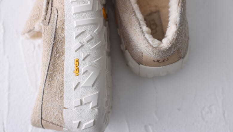 防臭加工が施されたフットベッド(インソール)はフワフワで肌触りの良い“UGGplush”と、テキスタイルの2種類が付属するので季節や気温に合わせて入れ替え可能。近所の買い物からオフィス用、車や公共交通機関での移動まで幅広いシーンで活躍してくれる一足だ。