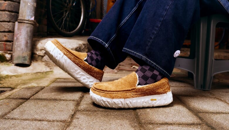 最後はスリッパの心地良さを取り入れたスニーカーのローメルだ。アッパーにスエードと再生バリスティックキャンバスメッシュを採用している。従来のソリッドカラーに加え、同系色をツートンにまとめた新色のチェストナット/ブライト及びメロンが追加。