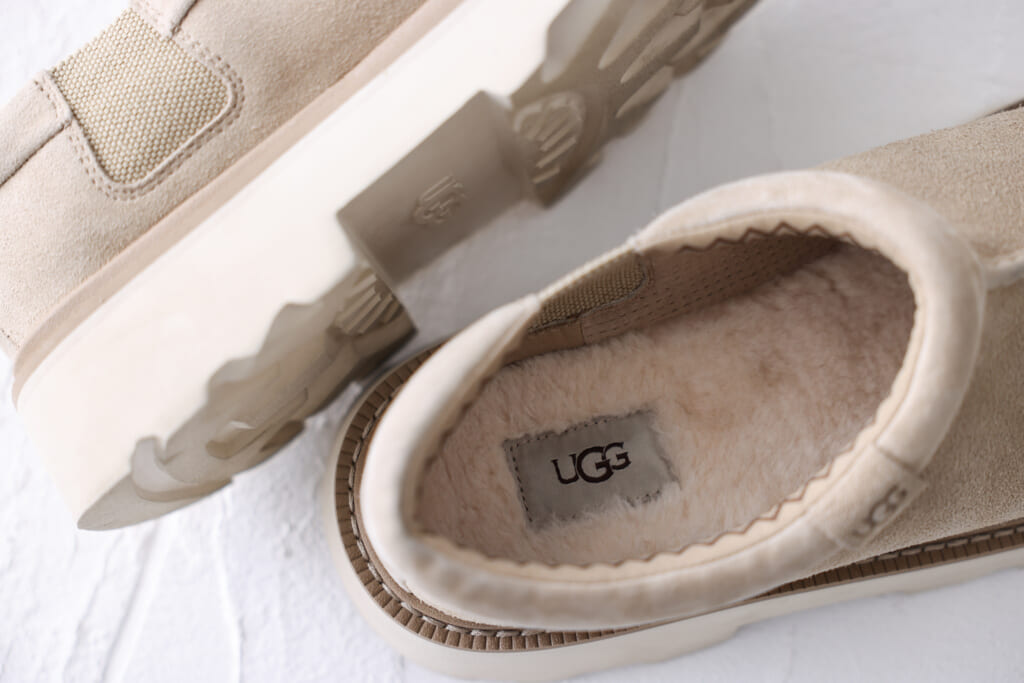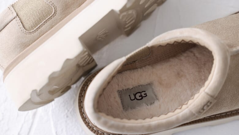 また内側には、ソフトなUGGplushライニングを取り入れて温かくて優しい履き心地を実現。ざっくりとしたスエードアッパーと高さ約4.5cmのヒールでカジュアルな印象を与えてくれる。こちらも25~30cmサイズ展開で、計3カラーが揃う。