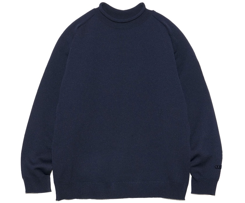 カーディガンと共地でデザインされた、首元に柔らかさを演出するロールネックタイプ。スリーブの構造も同様でアームがストレスなく動かせて快適な着心地に。ゆったりとしたシルエットのため、インナーにシャツなどが重ね着できます。