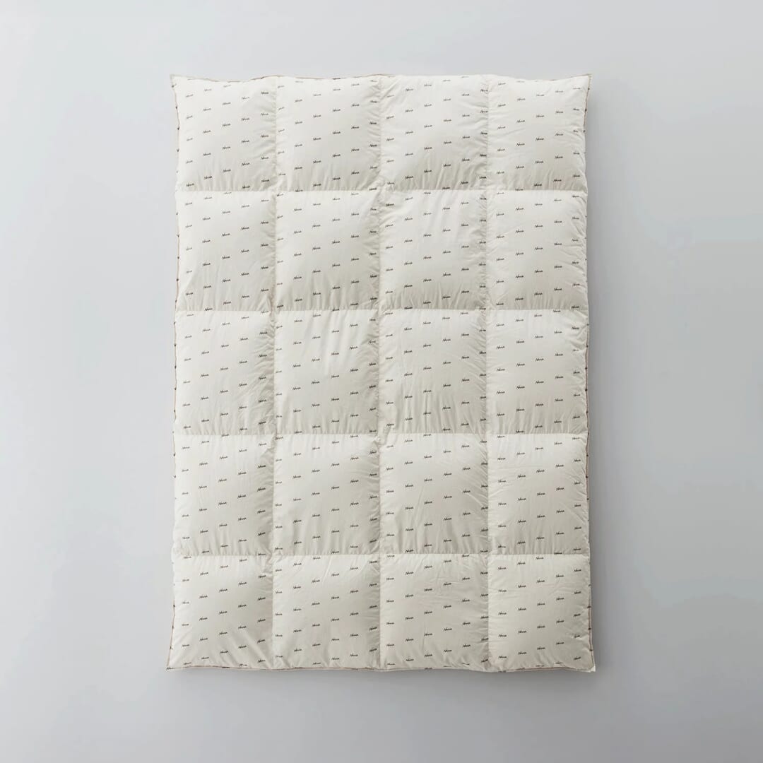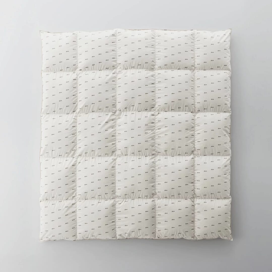 こちらは、新たな方法でリサイクルされた、羽毛を用いた、シングルサイズ掛け布団。膨らみを最大限活かせるよう、封入する立体キルトが通常よりも高く設定されているなど、構造にも工夫が凝らされている。リサイクルダウンでありながらも、保温性と寝返りを妨げない軽い寝心地は健在だ。