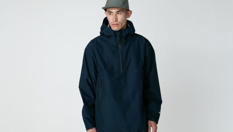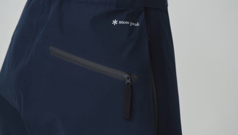 これらスノーピークの“GORE-TEX Rain”シリーズは、新たにリサイクル100%のポリエステル材やフッ素フリーの撥水材など環境に配慮したマテリアルにブラッシュアップされているのも見逃せない。