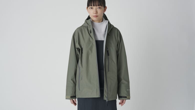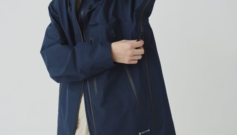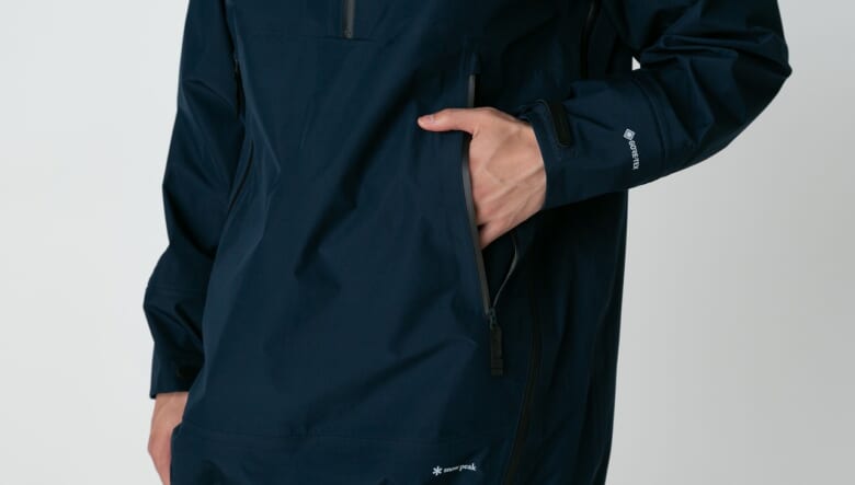 キャンプギア同様に、ユーザーに寄り添いながらシンプルかつ機能性もしっかりと追及したアパレルを展開する「Snow Peak(スノーピーク)」。2024年からリリースしている“GORE-TEX Rain”シリーズはその最たるもので、その名の如く完全防水を謳うレインウェアとなっている。