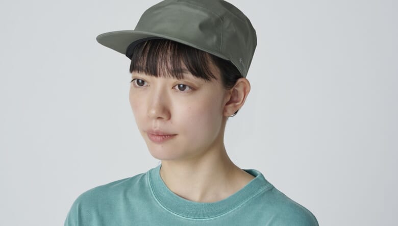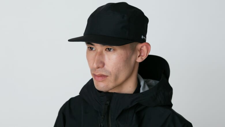 天候が変わりやすいフィールドや登山などでは帽子も活用したい。スポーティな6パネルのバイザーキャップも完全防水かつ透湿性に優れ、内側には吸水速乾性のある“ビンカワ(シームテープ)”を使用しているのもポイントだ。