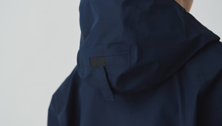 ジャケット同様にフルシーム加工のアノラックは、お尻までカバーするセミロング丈を採用。袖口は面ファスナー、フードと裾はスピンドルコード(紐)で調節が可能だ。