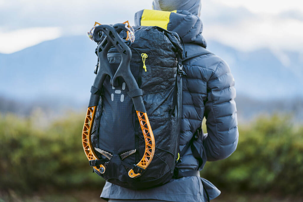 軽量ながらも多彩な収納オプションを搭載しているのも特長。ウォーターボトルポケット、ピッケツアタッチメントストラップ、ハイドレーションシステム対応のバックパネルポケット、ロープなどを固定するための取り外し可能なコードとウェビングなども備えている。