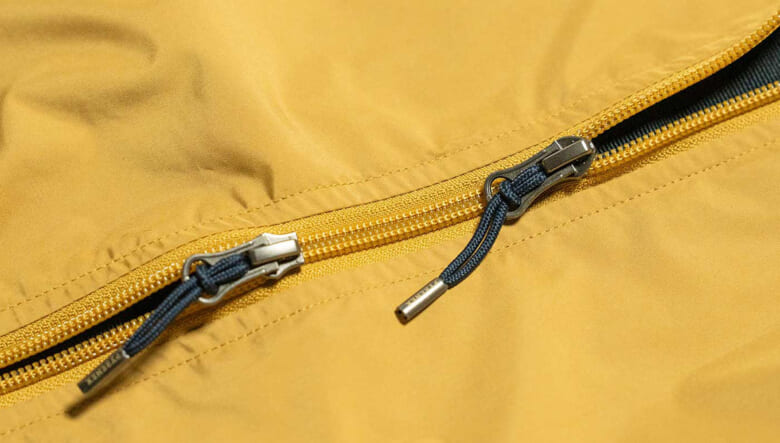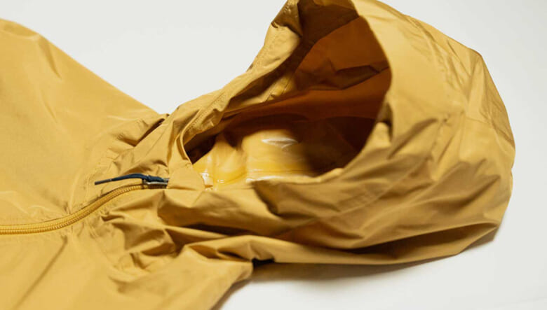 「ピレネックス」の“エンショアー”は、防風撥水透湿性を兼ね備えたフーデットジャケット。簡易防水レベルなのでレインウエアとしては使えないが、少し長めの丈に仕立てられていることもあり、風の冷たい日や小雨程度であれば頼れる一着になっている。背面にはベンチレーションも搭載していて、通気性も兼ね備えているので、体を動かすようなシーンでも蒸れにくい。