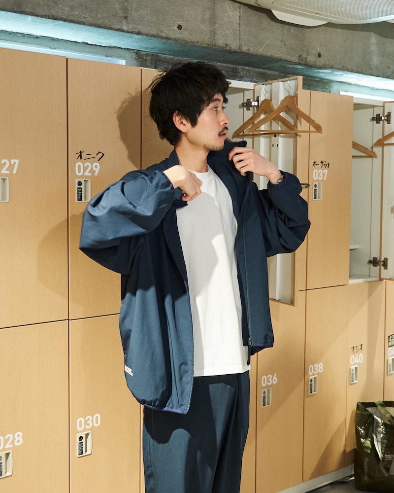 さっと脱いでさっと羽織れる、しなやかな肌触りが特徴のセットアップジャージ。トップスとパンツを一まとめにして、内ポケットに収納することが出来るパッカブル仕様。なるべく軽装でサウナに行きたい方のニーズを叶えてくれています。