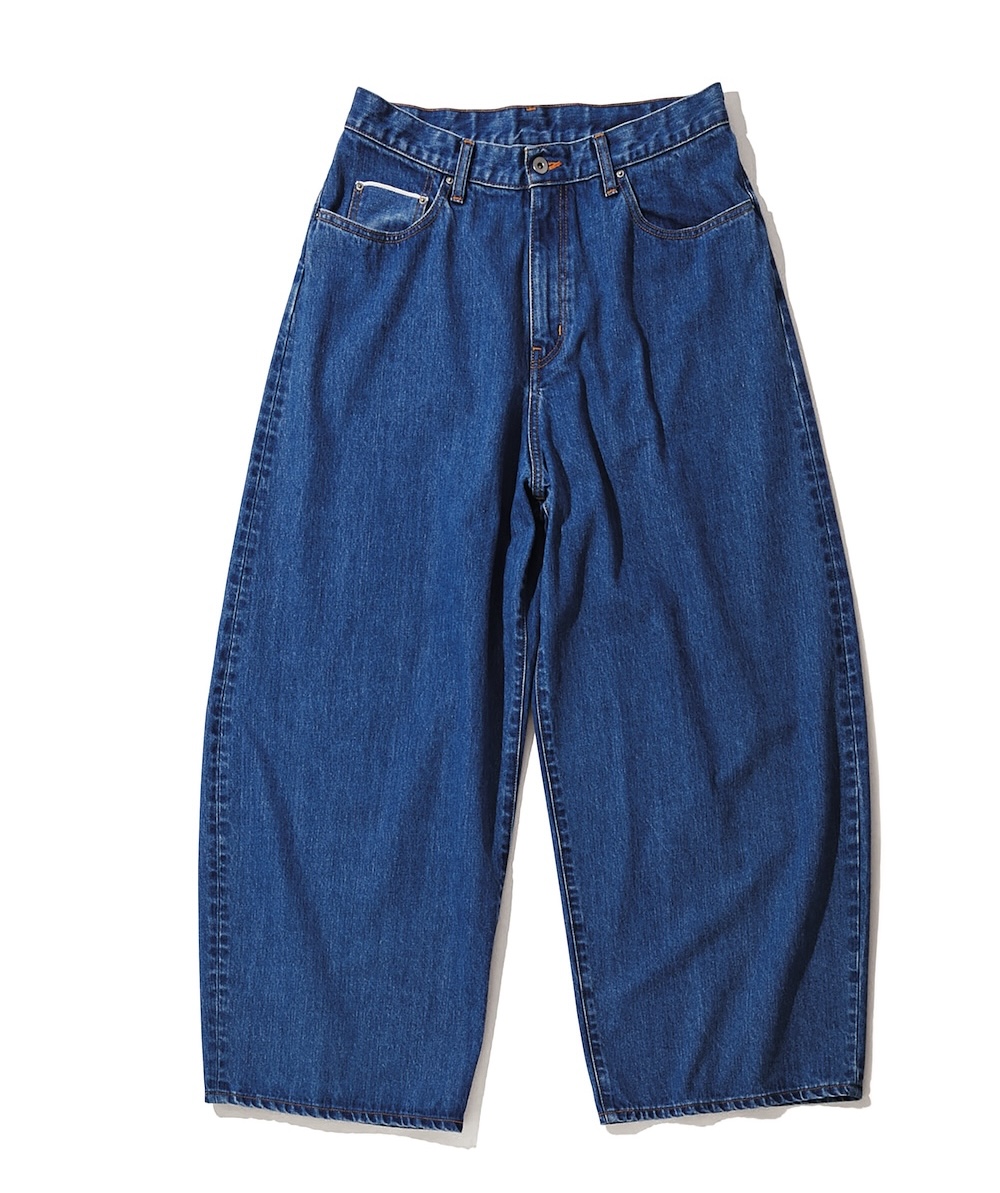 できるかぎり太くつくられた5ポケットデニムパンツ。丈も昨今では比較的長めで、穿くと足元にだぶつきがでるのも良い雰囲気。2シーズン継続の人気作で、ライトブルーとブルーの2色展開。