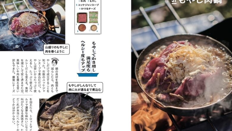 そんな2人がタッグを組んで生み出した“素材を焼くだけ”、“調味料をかけるだけ”、“混ぜて煮込むだけ”の、スキル不要レシピが60品目も収録されているのが、『焚き火メシの本』。
