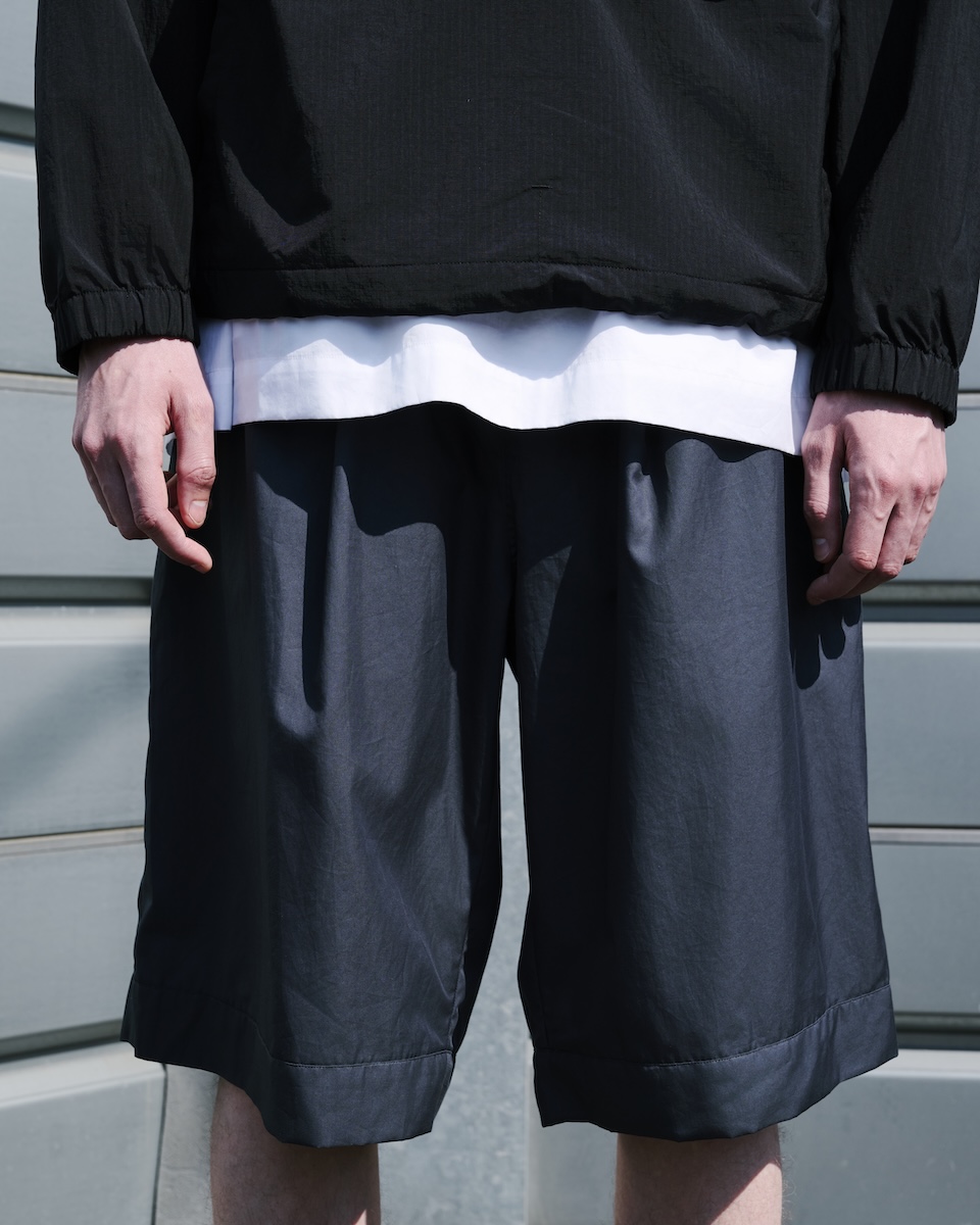 インラインのホワイトに加えて、直射日光による表面温度の上昇を比較し、温度が上がりにくいグレーを別注色として製作。200番手のスーピマコットンにシリコンを混ぜた生地を使用して、通気性とサラッとした清涼感が特徴的。共地のショーツも展開しています。
