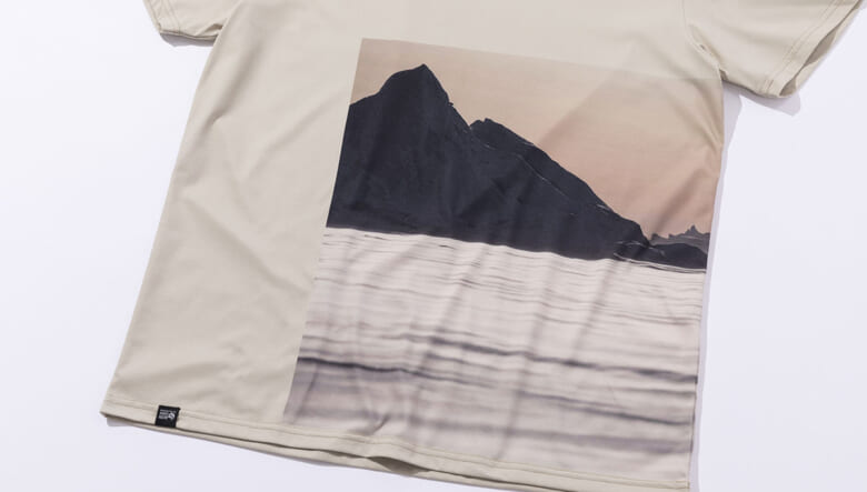 Tシャツのボディには速乾性に優れ環境負荷を低減した100%リサイクルポリエステルを採用。コットンライクでしなやかな着心地に仕上っている。また、夏季の高所登山を快適にする遮熱効果や、汗をかいても臭いづらい抗菌加工も備えているので、これからのシーズンにぴったりな1枚だ。