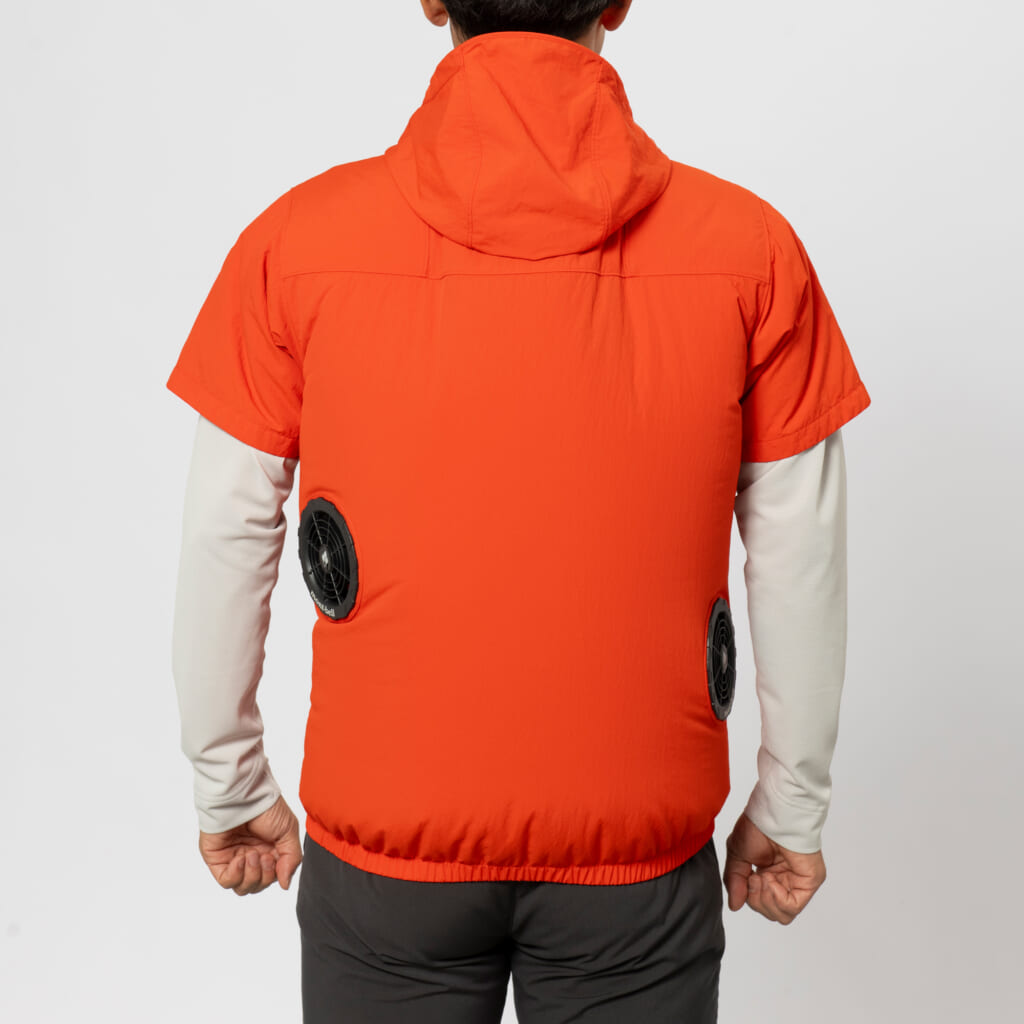 傍目から見るとちょっと暑そうに見えるけれど、一度使えばその効果は納得! キャンプでゆったり過ごす際にも、アクティブに動き回る時も活躍間違いなし。なおファンとバッテリーは別売りなので合わせてGETしよう。