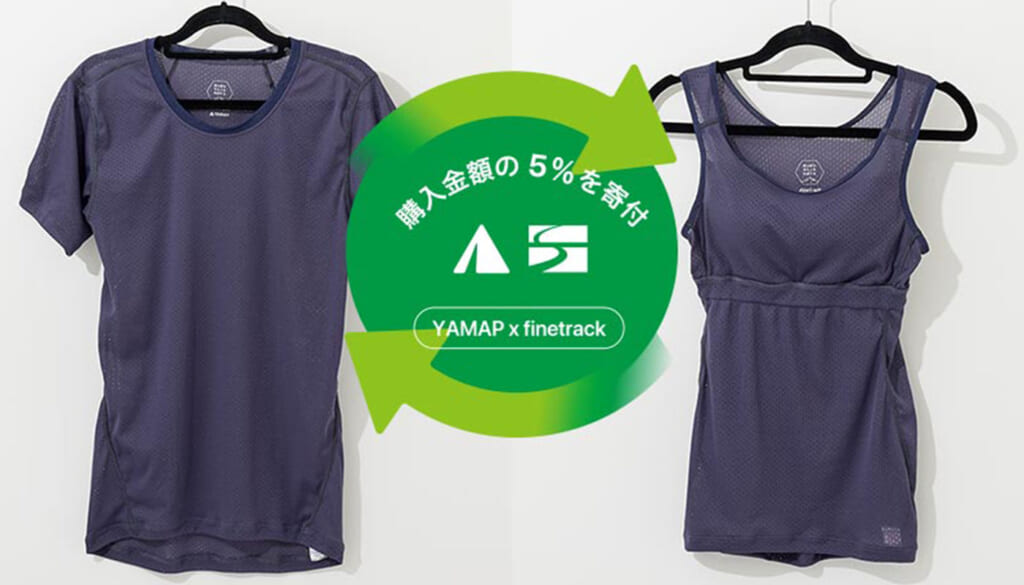 このプロジェクトでは、“finetrack × YAMAP 別注ドライレイヤーベ ーシック”の購入金額の5%が「YAMAP(ヤマップ)」を経由し、3つの登山道整備団体に寄付されます。