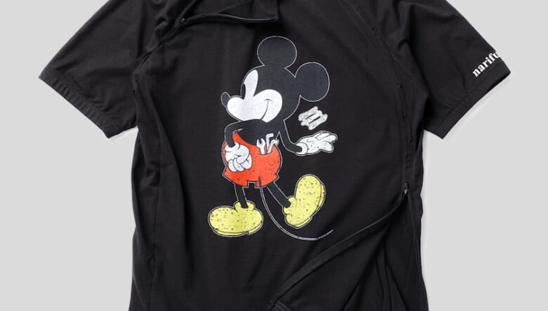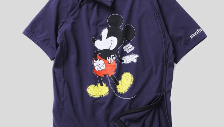 「narifuri(ナリフリ)」が2013年にデザインした、メカニック風のミッキーを描いたサイクルジャージー・Tシャツ・スウェット。ファンから多くのリクエストを受け、そのアーカイブモデルが待望の復活を果たしました。当時のグラフィックはそのままに、より機能的なボディをまとってのアップデートです。