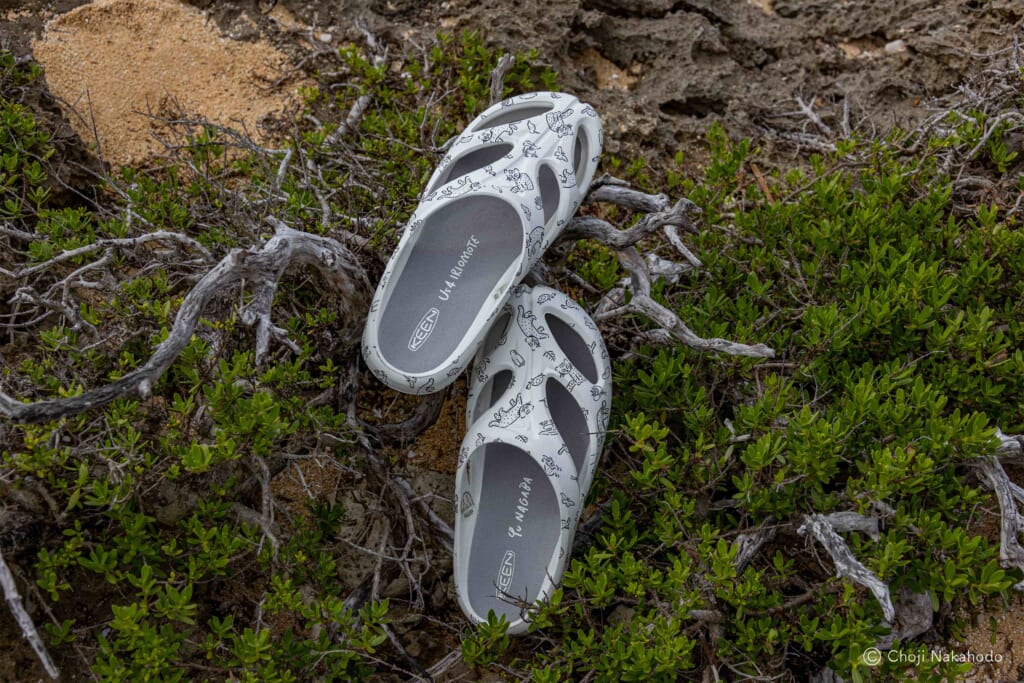 “KEEN × Us 4 IRIOMOTE”コラボレーションで登場したこちらのサンダル、SHANTIARTS(シャンティ アーツ)。この活動に賛同したアーティスト、長場雄氏によるデザインで、イリオモテヤマネコを中心とした西表島の様々な生物がプリントされ、デザインが最大限に映えるように、合わせやすいカラーでまとめられている。