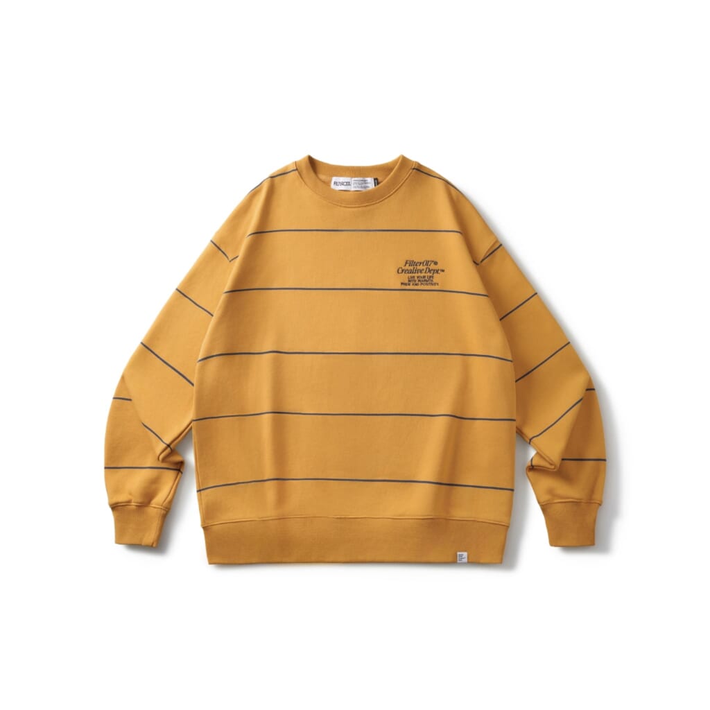 通気性と吸汗性に優れたヘビーウェイトコットンの薄手スウェットは春の一軍入り間違いなし。抜染プリントによるストライプ柄は、プリント特有のゴムっぽいテクスチャーを軽減。一枚でサマになる雰囲気バツグンのトップスは、この季節かなり便利な一枚。