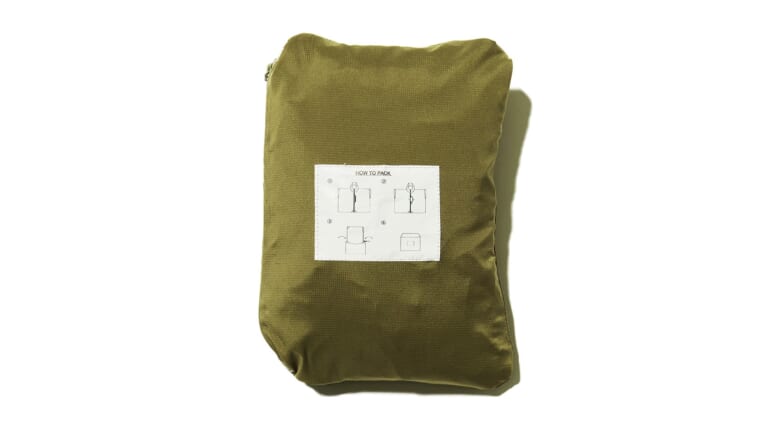 ザックを背負ったまま羽織ることもできるゆとりがあるので、レインカバーも不要。なによりシンプルなデザインが日常使いにはありがたい。本体はチェストポケットに収納可能なので持ち運びも便利なので、山に登らない人でも梅雨のシーズンを見越して入手を検討してみるのはどうだろう。