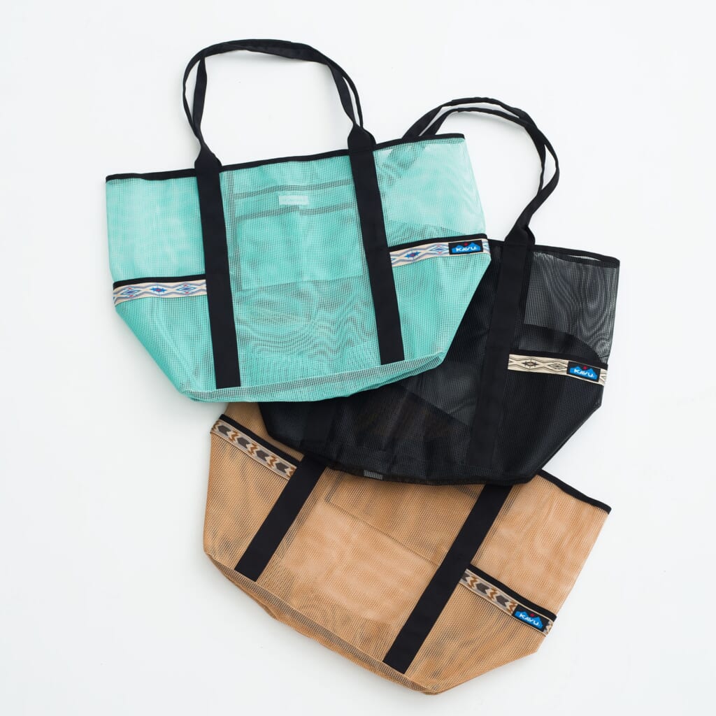 「カブー」を代表するアメリカ企画のトートバッグ“Alder Lake Tote”を、『ロンハーマン』流にアレンジした本作。夏にぴったりのメッシュボディはそのままに、それぞれの色合いに合わせてテープの配色組みを変更。また、通常は正面に配されるテープをサイドポケット位置にシフトしているのもポイントです。