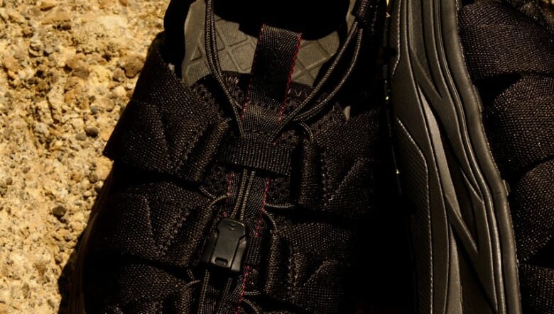 ヒールストラップ付きのモデル“WADUKI”がベースで、アッパーとヒール部分が1本のロープで繋がっており、1カ所を締めるだけで足全体をホールドできるイージーさが魅力!