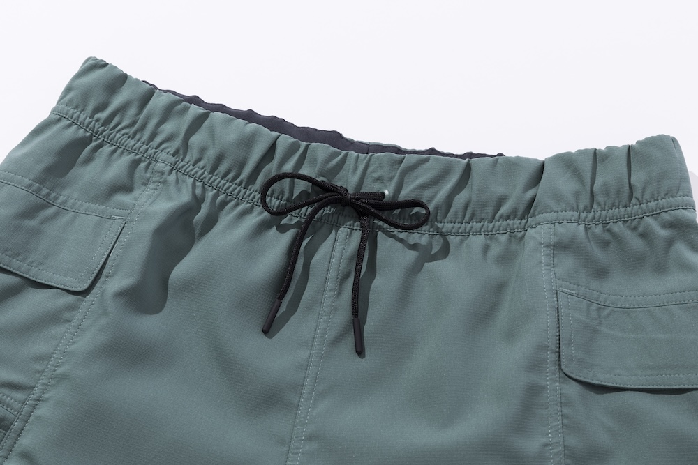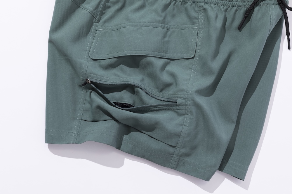 組下のショーツもあるので、セットアップスタイルも楽しめます。ウエストはドローコード内蔵のイージー仕様。ベンチレーションとしても機能するスマホポケットを備えるなど、シンプルなルックスでも機能は上々です。