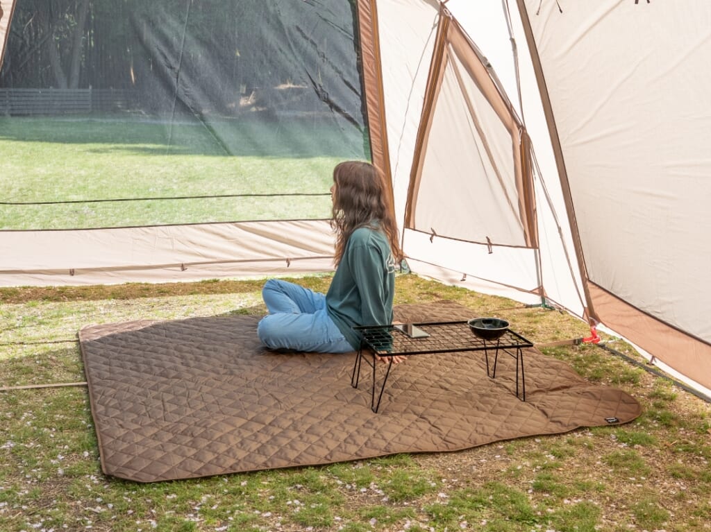 キャンプやピクニック、海水用であると便利なアイテムがレジャーシート。この新作ラグは、座り心地の良い綿入り仕様になっているうえ、両面に撥水加工が施されている。地面の汚れや湿気を気にせず使えるのはもちろん、ドリンクや食事をこぼしてもすぐに拭き取れて安心だ。