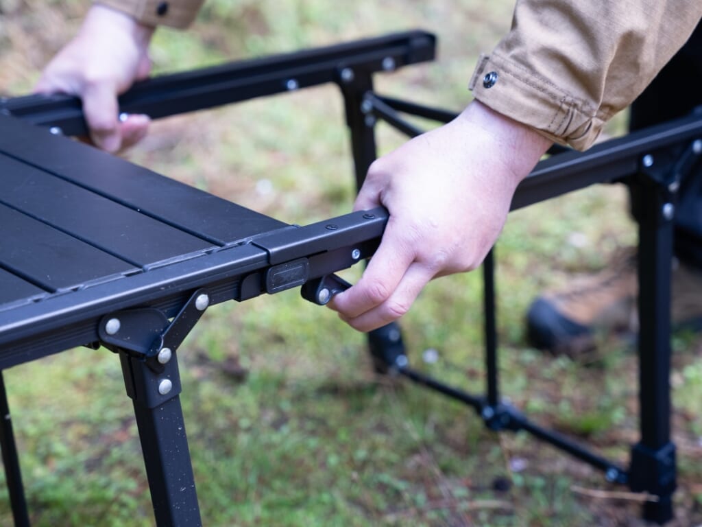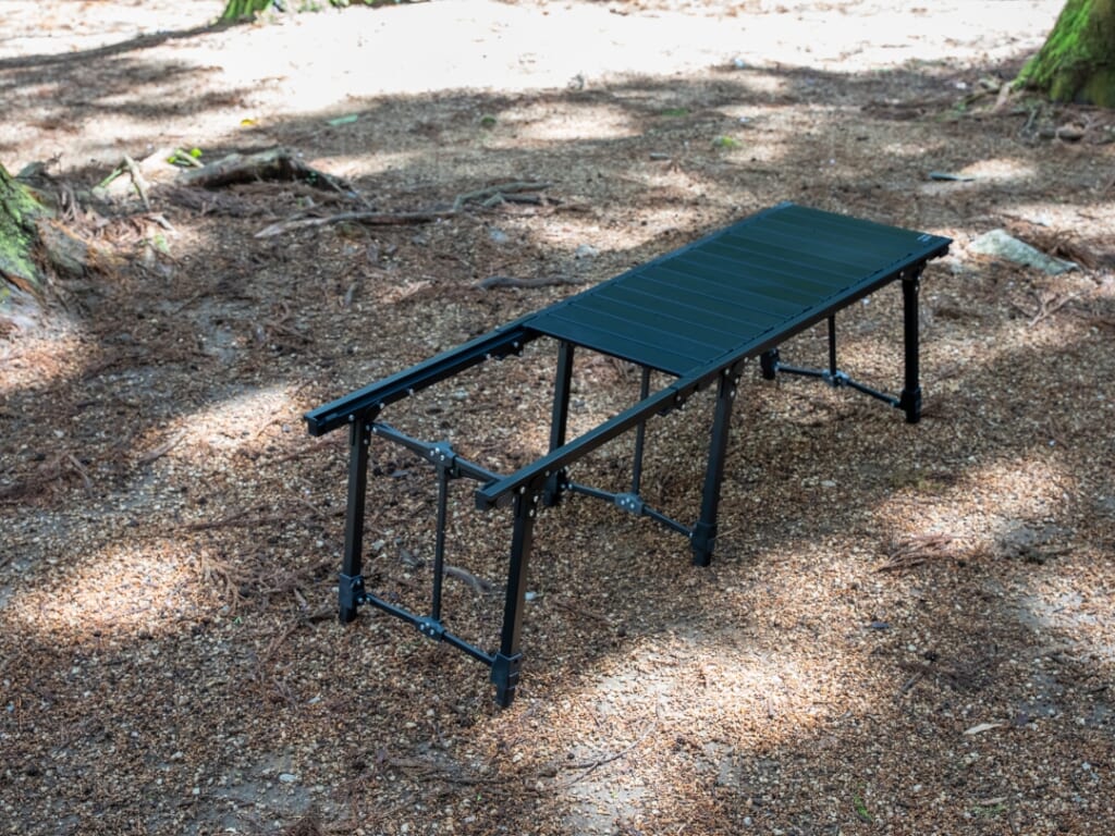 本体同様、各脚を4mm単位で細かく高さ調整できるので、地面の凸凹もへっちゃらだ。テーブルが手狭になってきた方や、ソロとファミリー、グループなど、さまざまなスタイルでキャンプを楽しむ方にうれしいオプション。