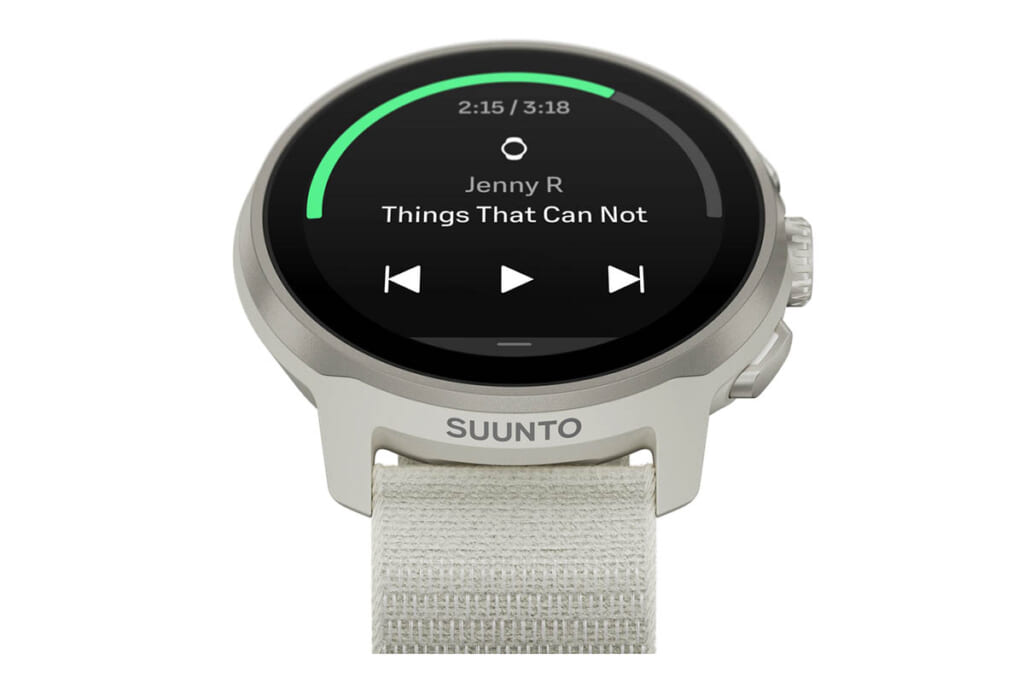 さらにMP3音源の保存・再生機能にも対応しているので、スマートフォンや音楽プレイヤーを携帯しなくてもお気に入りのプレイリストを聴きながらランニングOK。その他にも天気情報、アラーム、アクティビティトラッキングといったスマート機能も搭載しているので、ランニング中だけでなくデイリーでも活用できるスマートウオッチになっている。