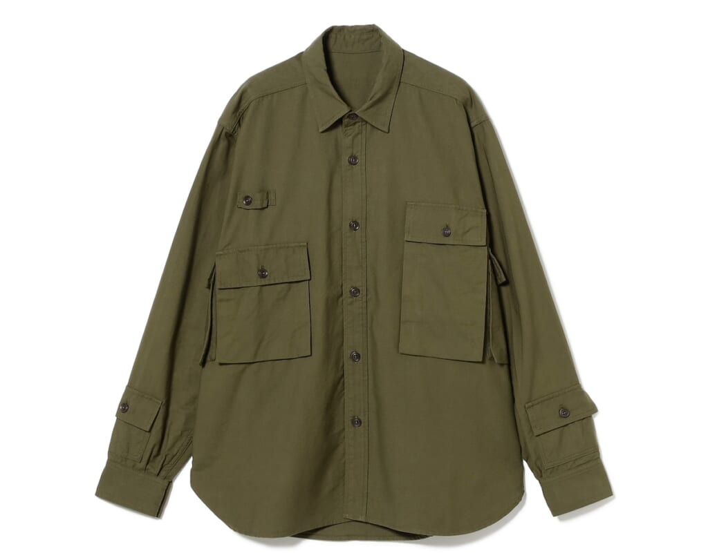 なかでもオックスフォード生地のロングスリーブシャツは、小林氏が手に入れたばかりの貴重なヴィンテージをサンプリング。袖ポケット、アシンメトリーポケット、背面ゲームポケットなど、オリジナルに忠実ながら現代にもハマるバランスに仕上げた。