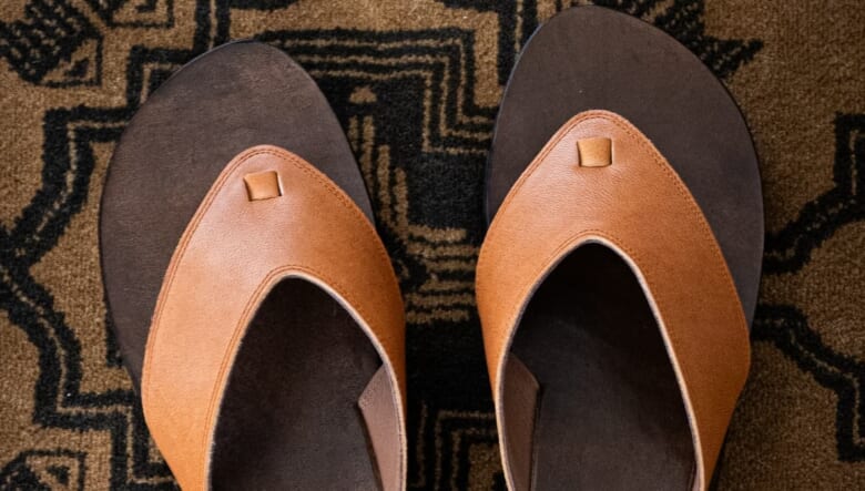またクラシカルな印象とは裏腹に、グリップ性とクッション性に優れたビブラムソールを採用。悪路での使用や長時間の歩行でもへっちゃらなトングサンダルの存在は嬉しい。