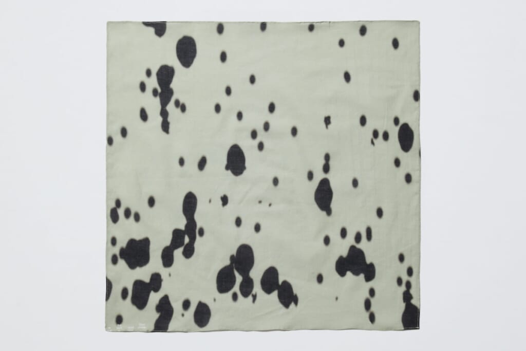 平織コットンのオリジナルテキスタイルを採用したバンダナ。独特で緻密なグラフィックがアクセサリーとして使いやすく、フィールドでは手ぬぐい的に活用できる。