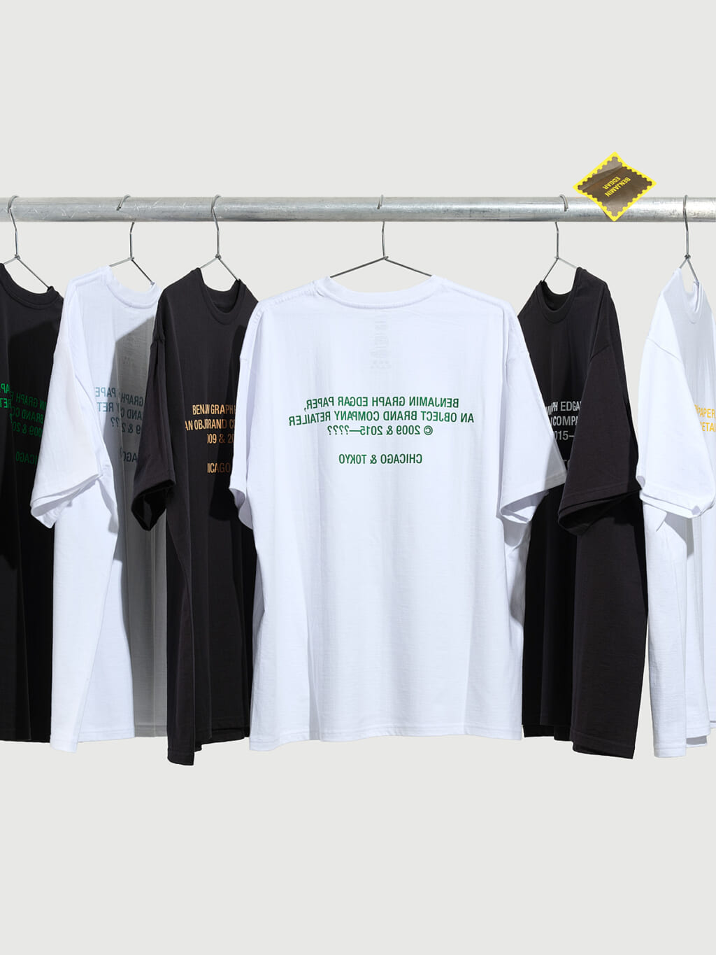 今回は、「Graphpaper」の定番アイテムである S/S Oversized Teeをキャンバスに互いの名前を交錯させ、フロントとバックで鏡のように反転させたオリジナルのグラフィックをプリント。両者の拠点を記した“CHICAGO & TOKYO”のタイポグラフィは、2023年から続くパートナーシップを表現している。