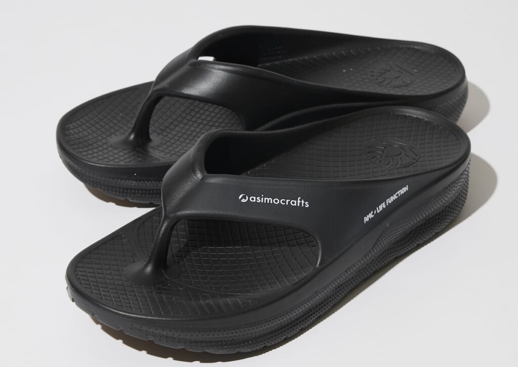 こちらはアシモクラフツ別注モデルで、トング部分にオリジナルのプリント入り。1足あると、夏キャンプや水遊びで重宝する。