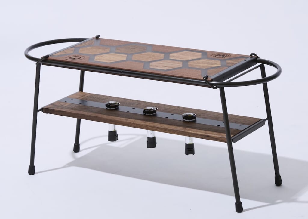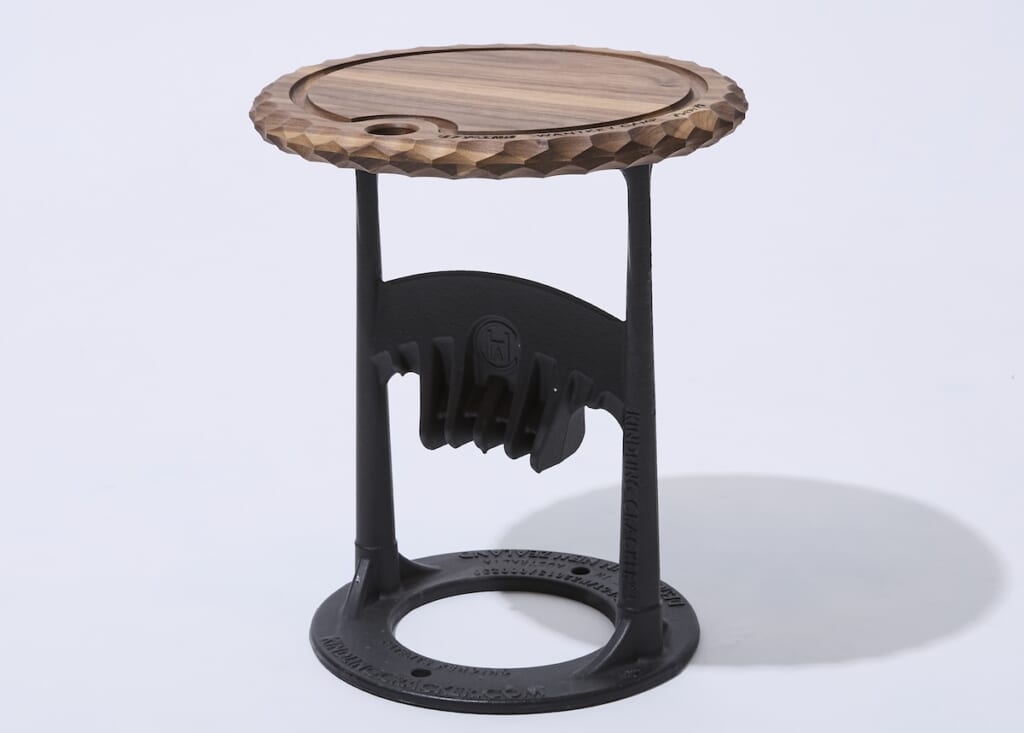 こちらは、薪割りギアのキンドリングクラッカーがサイドテーブルになる天板。元々はサンゾー工務店とウォンキーキャンプのコラボレートで誕生したが、今作はアシモクラフツも加わったトリプルコラボモデル。