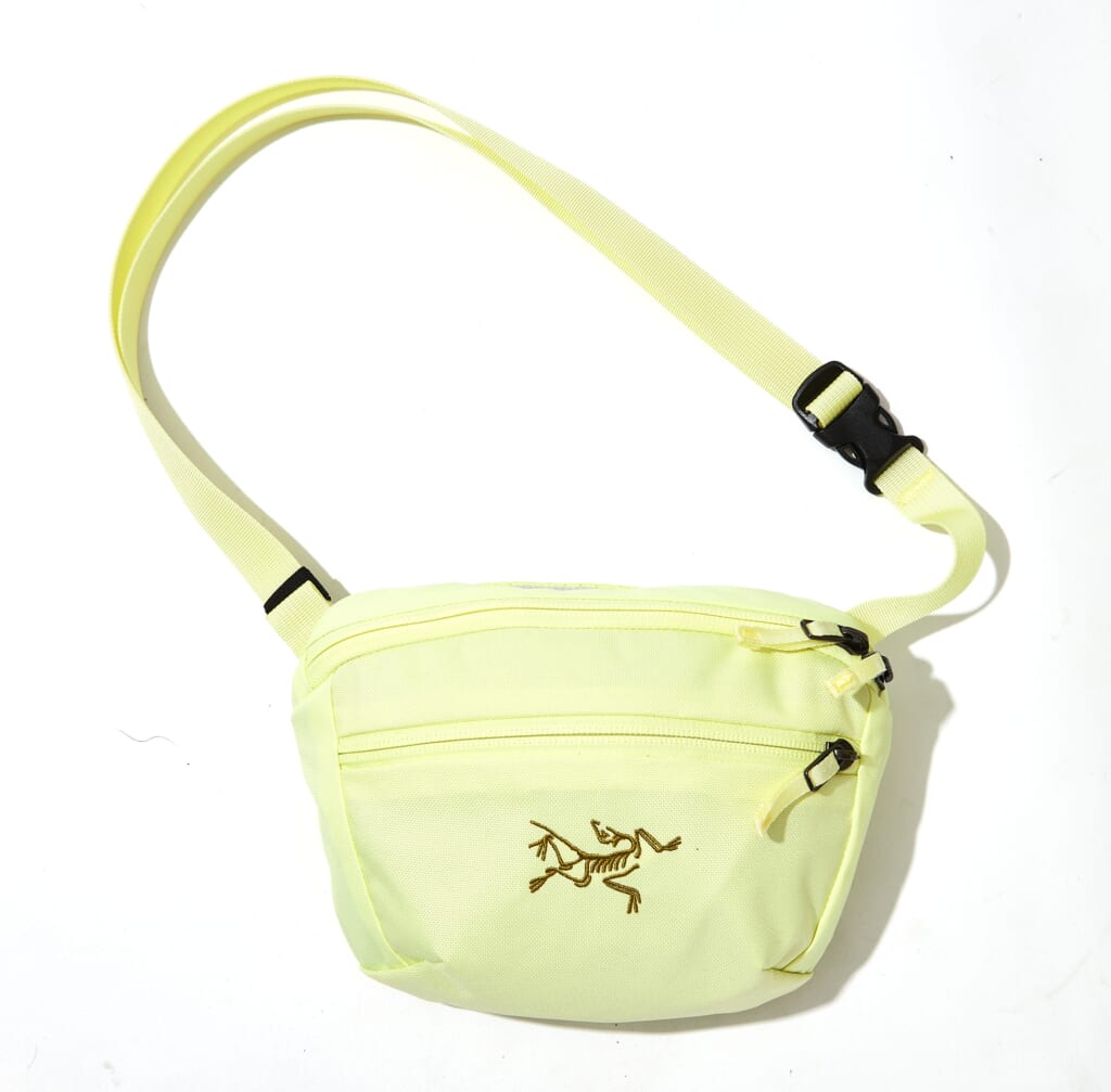 腰に巻いても肩にかけてもOKで、ハイキングや長時間の縦走時の補助パックとしてはもちろん、デイリー使いにもおすすめ。バックパネルには通気性に優れたメッシュ素材を採用し、スマホ収納ポケットも備える。