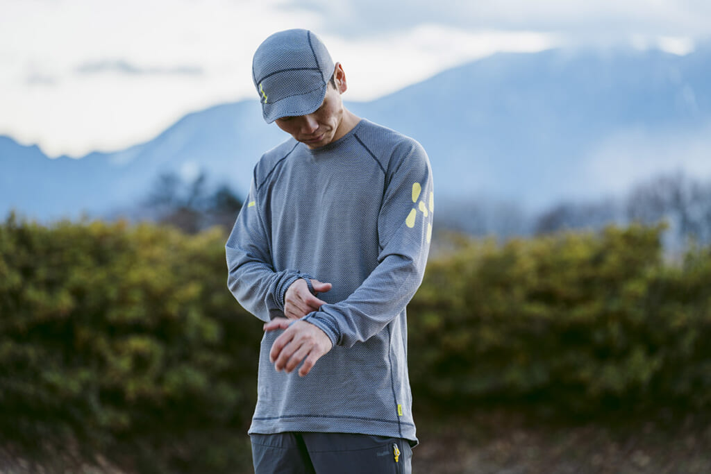 「L.I.M ZT II Air Base Men(リム ゼニス Ⅱ エアー ベース)」と「L.I.M ZT II Air Bottom Men(リム ゼニス Ⅱ エアー ボトム)」は、運動量の多いトレイルランニングやファストハイク、高温多湿な季節と山域、汗冷えが気になる稜線歩きなどにマッチするアンダーウエア。