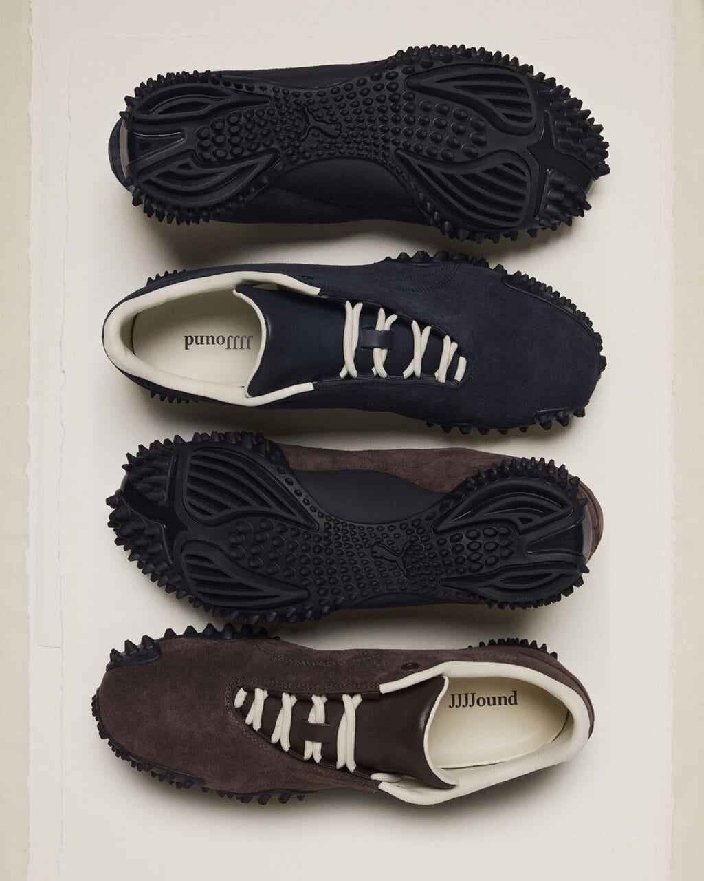 大胆なシルエットが特徴の“MOSTRO”を、細部にまでこだわって再構築された本作は、静かで洗練された「JJJJound」ならではの美学が、プーマのアーカイブモデルに落とし込まれ、落ち着いたトーンのブラウンとネイビーブルーの 2カラーで展開。