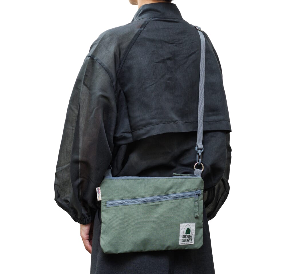 市民権を得た“サコッシュ”は、前面にスラッシュファスナーのポケット、背面にはドットボタンのポケットを備えて荷物を仕分けできるのが嬉しい。サイズはW29×H20.5×D1cmとやや大きめで使いやすい。